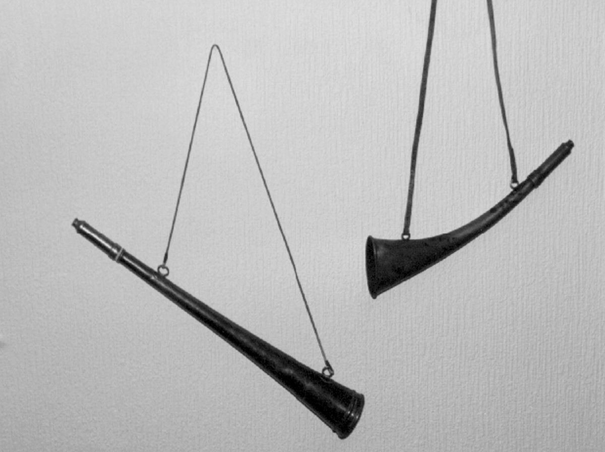Zwei alte Schüttorfer Brandhörner. Mit ihnen wurden die Bürger alarmiert, wenn ein Feuer ausgebrochen war
